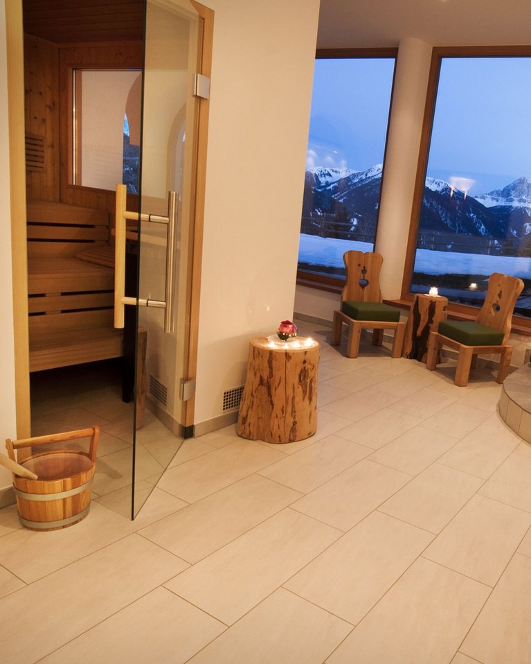 Das reine Quellwasser, die gute Höhenluft, die völlige Ruhe, die vielen Sonnenstunden und das milde Klima – all das trägt wesentlich dazu bei, dass Sie sich in unserem Hotel in Lüsen so lebendig, gesund und wohl fühlen. Erholung findet man hier vor allem in der Natur, aber natürlich auch in unserem kleinen, aber feinen Wellnessbereich mit Panoramasauna, Dampfbad, Kneippdusche und Ruheraum. Genießen Sie es ganz bewusst!