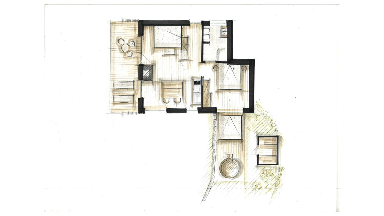 Rilassatevi nella vostra sauna privata o godetevi la vasca hot tube all'aperto per un’esperienza benessere senza pari. L’ampio soggiorno, con una cucina completamente attrezzata, una zona salotto accogliente e un camino indipendente, invita a serate conviviali e a momenti di relax.